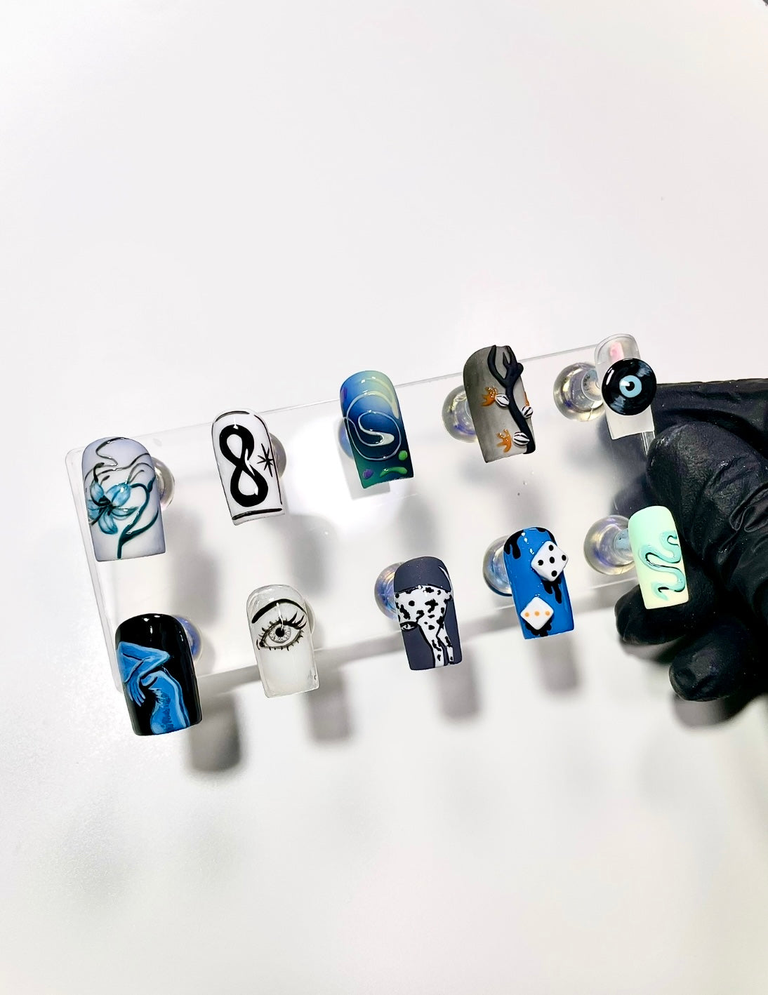 - 10 custom hand painted nails